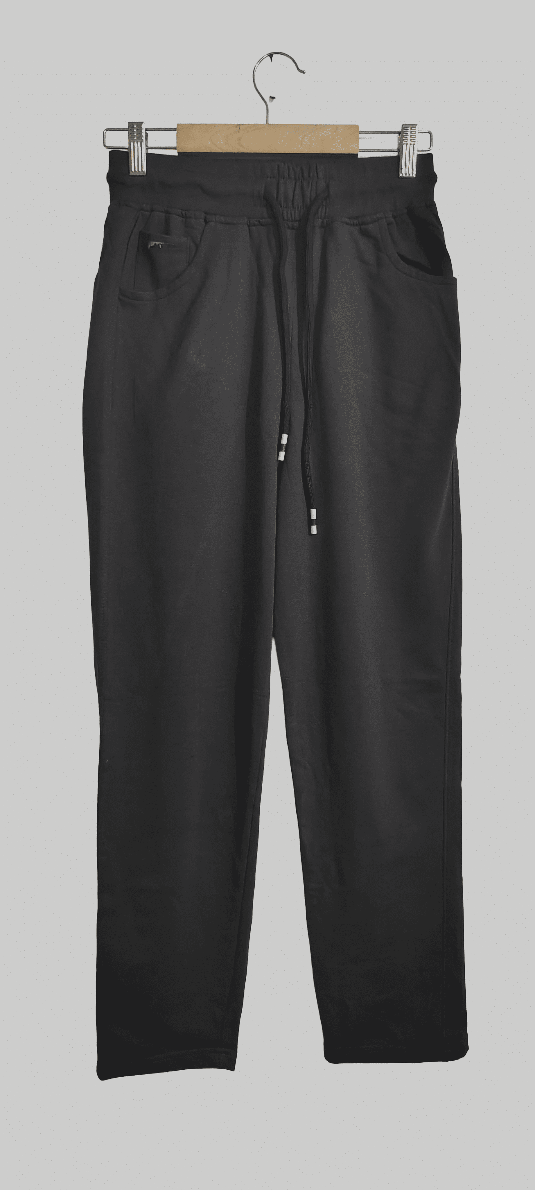 Upgrade your athleisure collection with these premium black joggers featuring thoughtful design details. The elastic waistband comes with adjustable white-tipped drawstrings for a customized fit. Notice the subtle branded pocket detail on the front that adds a touch of sophistication. Made from high-quality cotton blend fabric that's soft, breathable, and built to last. These joggers offer the perfect balance of comfort and style for the modern man who values both function and fashion.