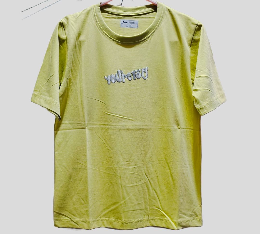Elevate your streetwear game with this oversized yellow T-shirt featuring bold white typography. Crafted from premium breathable cotton lycra, this tee combines comfort with a modern edge—perfect for casual outings, urban adventures, or simply making a statement.