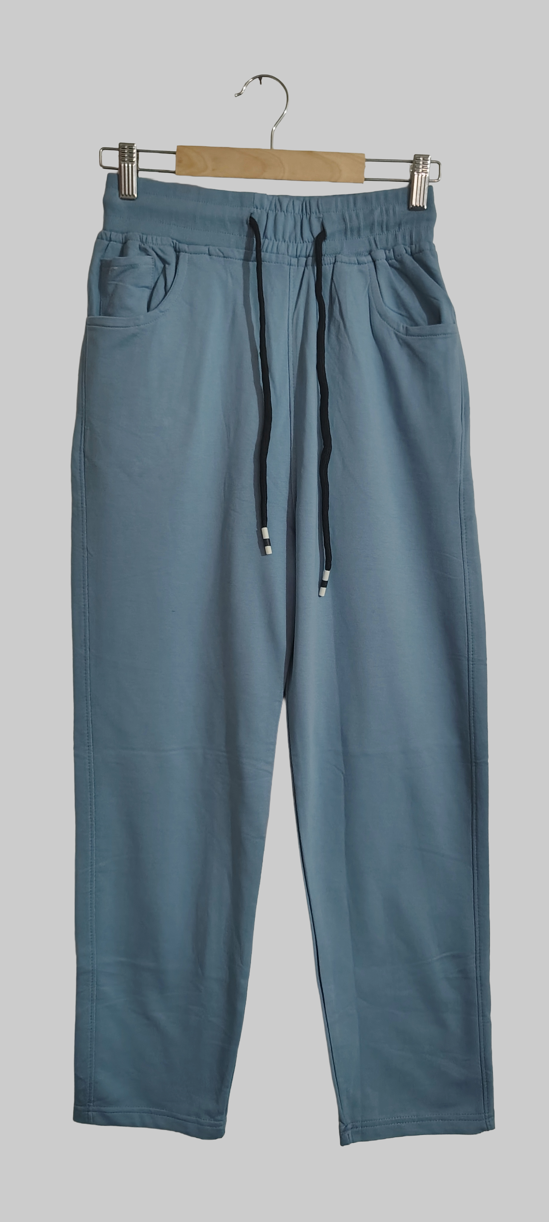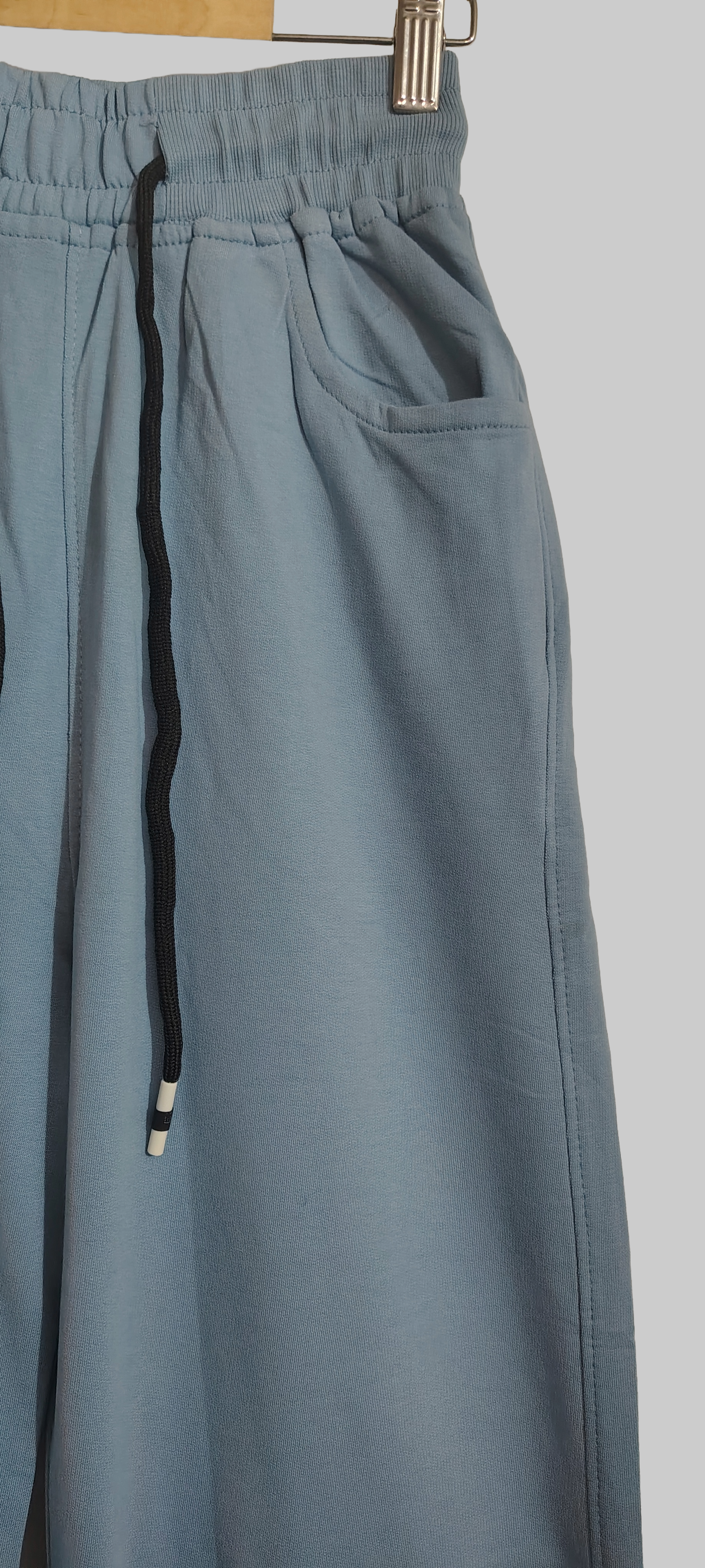 Add a pop of color to your athleisure wardrobe with these refreshing sky blue joggers. Perfect for spring and summer, this vibrant shade brings energy and positivity to your casual wear. Features include a comfortable elastic waistband with color-coordinated drawstring, generous side pockets, and a relaxed yet tapered fit. The breathable cotton blend fabric ensures comfort during workouts or casual outings. Stand out from the typical black and grey with this eye-catching color choice.