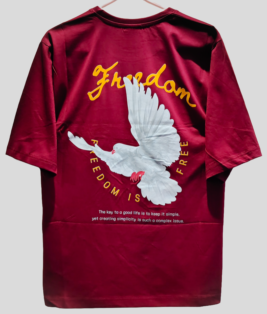 With a large dove print and "Freedom Is Free" in bold typography, this maroon tee reminds us of simplicity and liberty. The inspirational quote at the bottom adds depth, making it more than just fashion—it's a message.
